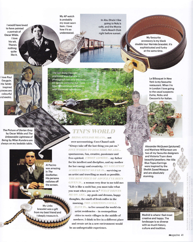 As shown in the March 22 - 28, 2007 issue of Ahlan! Tini was invited to attend the inauguration of the First DIFC Gulf Art Fair at Madinat Jumeirah in Dubai