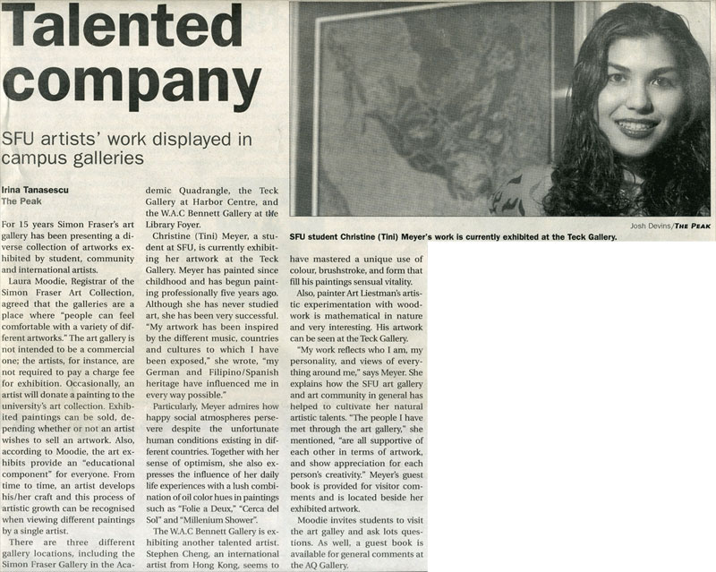 My Patron and I: A research article done by Tini investigating the role of Vancouver developers in the public art sector. Interviewees include Michael Audain, Larry Beasely, Robert Fung, Steve Hynes and other prominent members of the Vancouver community.